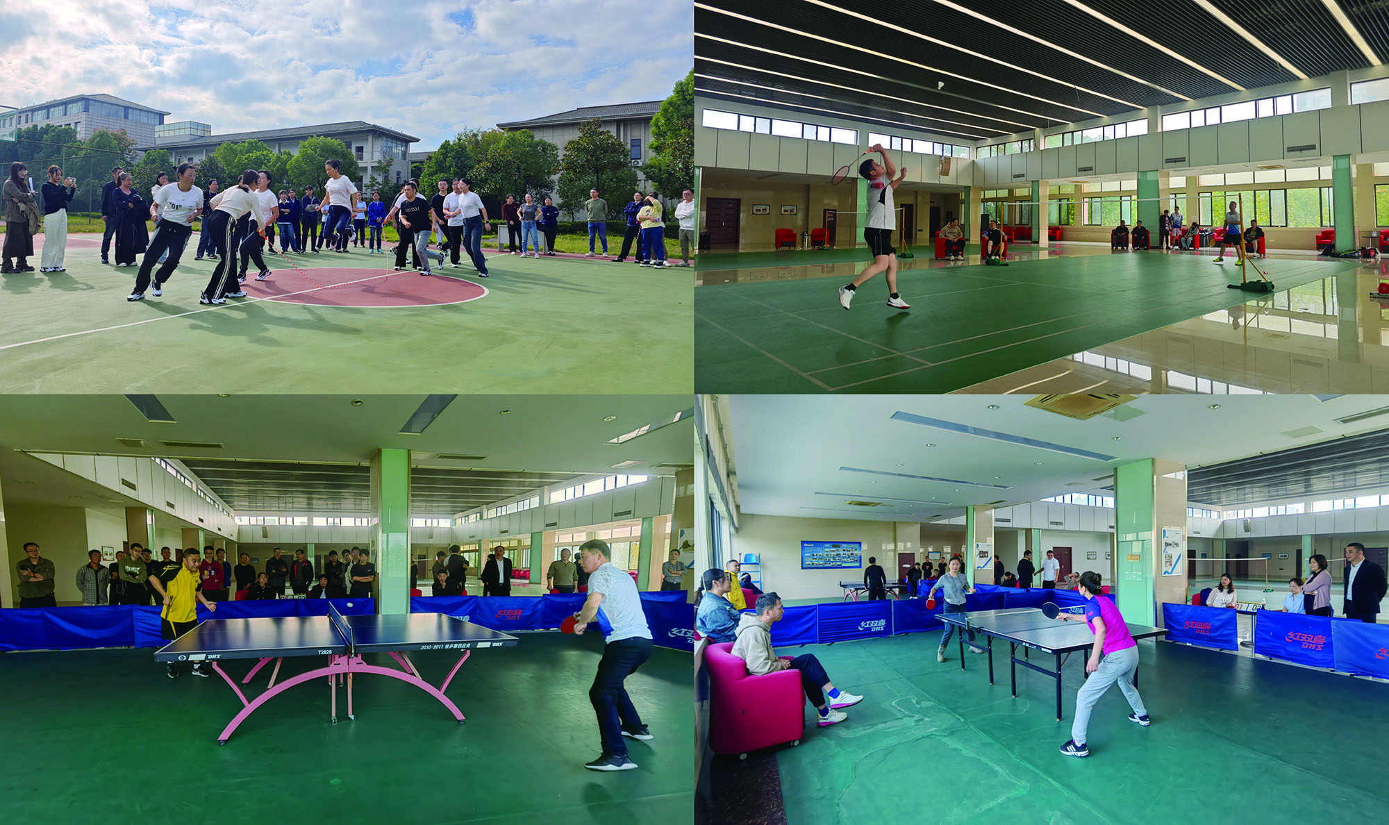 籃球、拔河、十人八字跳繩比賽項目中,隊員們團結協(xié)作,配合默契,奮勇拼搏。乒、羽比賽項目中,運動員們展現(xiàn)技藝,“乒”出風采、誰“羽”爭鋒,盡情享受運動帶來的快樂。